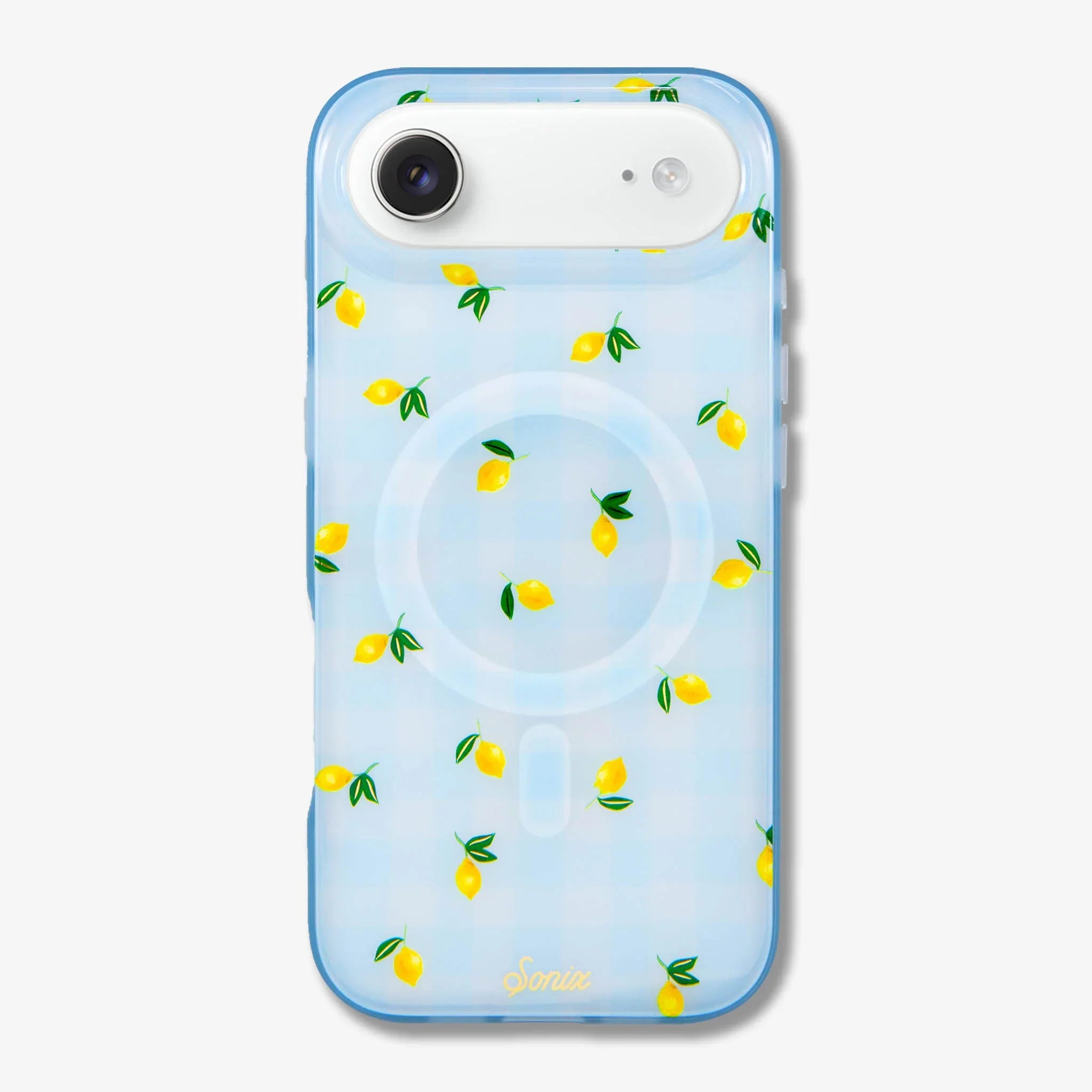 When life gives you lemons, let them inspire you to update your phone case for Spring! Warm weather, sunny skies, and ripe yellow lemons inspired the Lemon Gingham MagSafe® compatible iPhone case. Juicy lemons splashed over a light blue gingham background bring to mind a sunkissed picnic where lemonade is served. This pretty and protective iPhone case is as light and airy as a Spring day and is sure to brighten up your daily carry with a lemon zest for life!