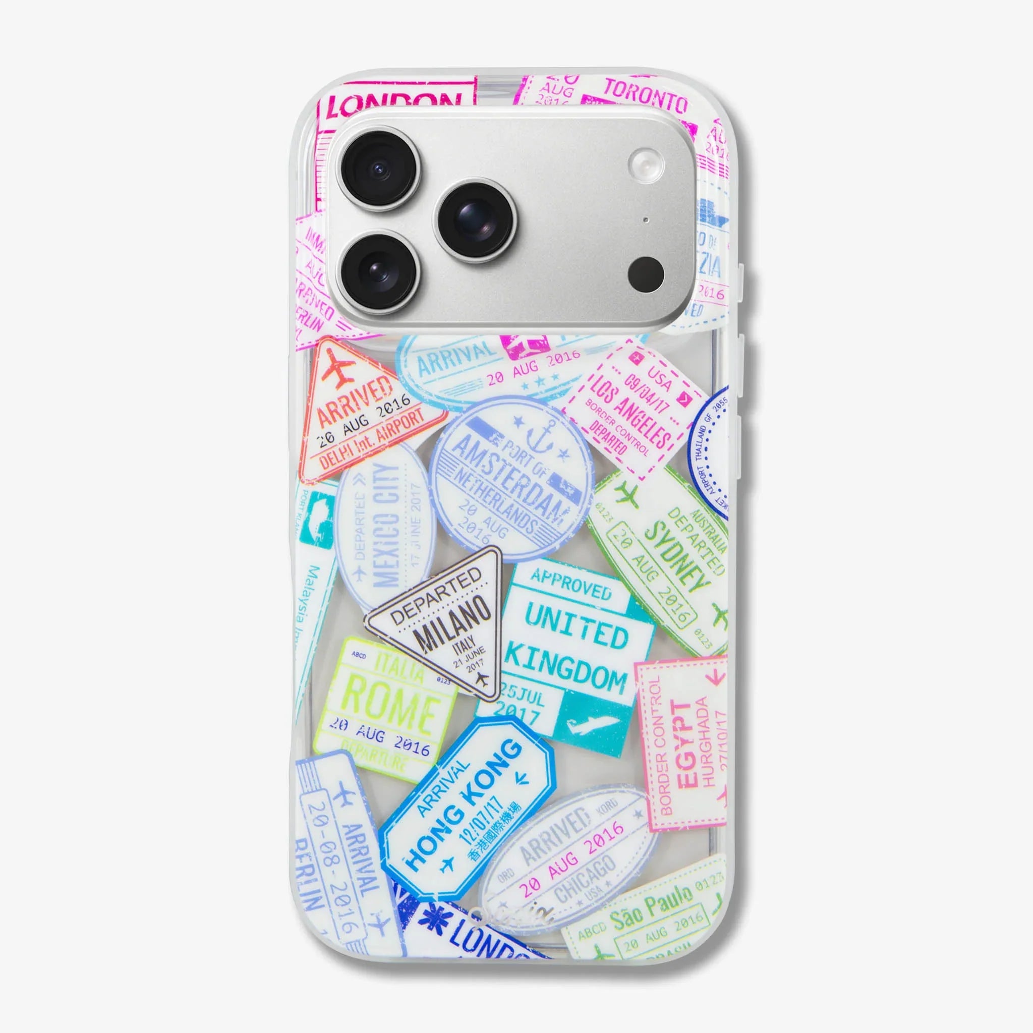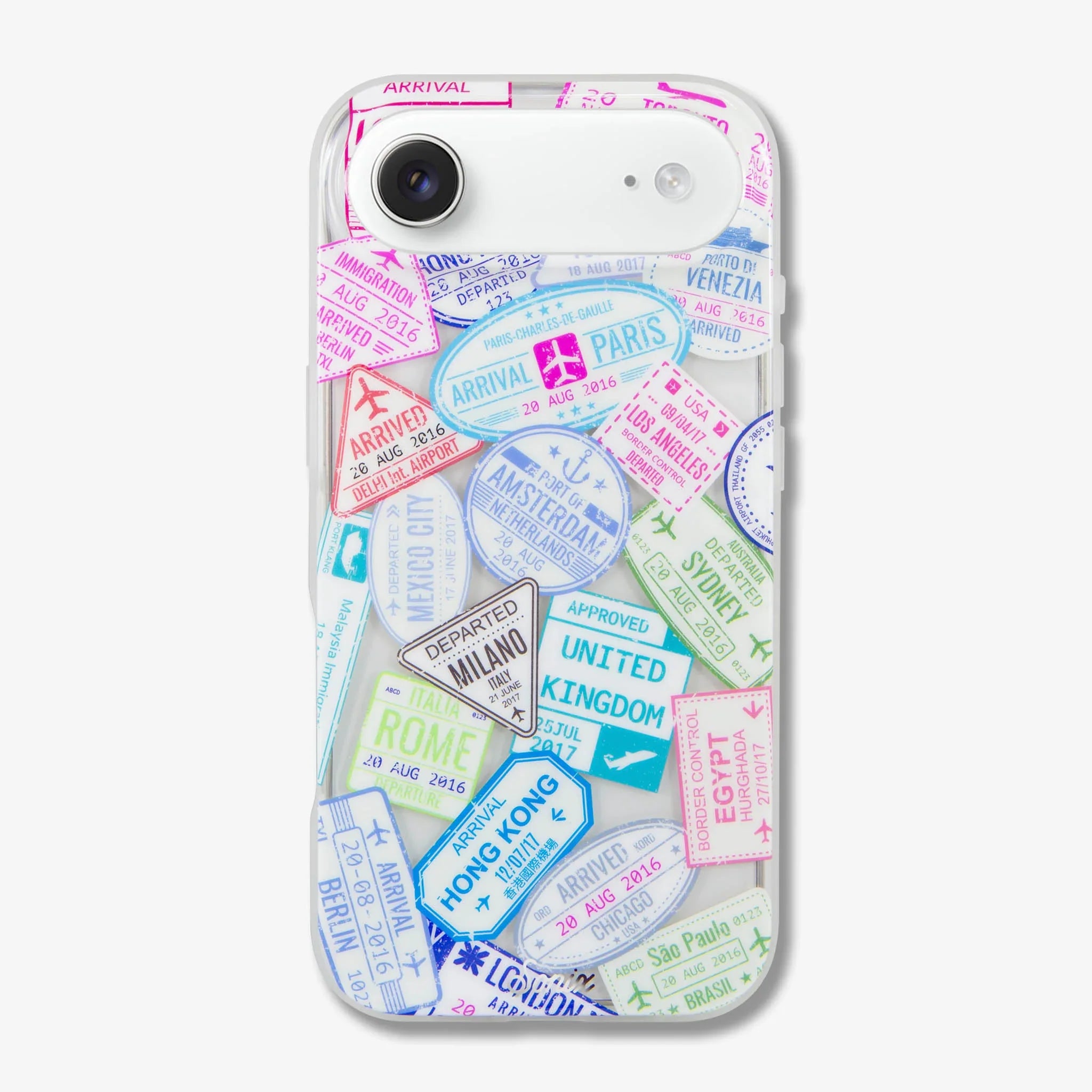 Whether you’re a jet-setter, or just someone experiencing some serious wanderlust, we’ve got the perfect phone case for you! Travel aficionados and daydreamers alike will love our Passport Stamps MagSafe® compatible iPhone case. Featuring a variety of colorful and worldly passport stamps printed on a gorgeous clear case, the unique color of your phone adds a touch of personalization to the classic and timeless appeal of the stamps. Let this jet-setting print remind you of memories of adventures past, and inspire your future’s next travel destination